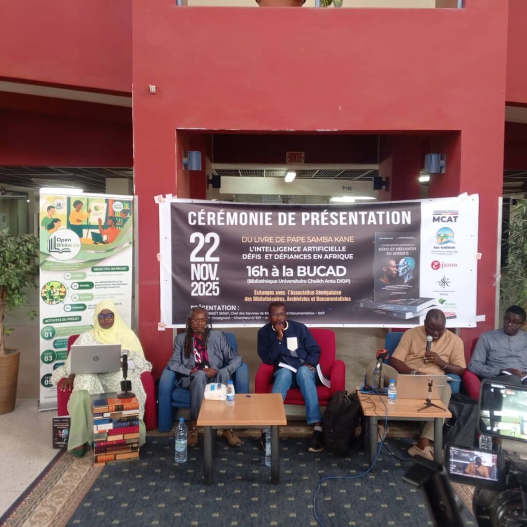 Ce samedi 22 novembre 2025, la Bibliothèque Universitaire Cheikh Anta Diop de Dakar (BUCAD) a accueilli la présentation de l’excellent ouvrage de Pape Samba Kane, intitulé *« L’intelligence artificielle – Défis et défiances en Afrique »*. Cet événement organisé en collaboration avec l’Association Sénégalaise des Bibliothécaires, Archivistes et Documentalistes (ASBAD) a réuni universitaires, chercheurs et professionnels de l’information autour d’échanges passionnants sur les thématiques abordées dans le livre.